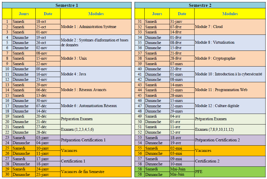Dans le tableau ci-dessous, vous trouverez les modules enseignés ainsi que le planning.